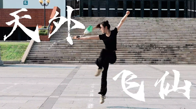 比如@大长腿思,化身峨嵋仙女,一套剑舞行云流水,那大长腿,确实像官方说的,是峨嵋山下的春江水。